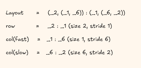 auto A = make_layout(make_shape(2,3), make_stride(1,4));