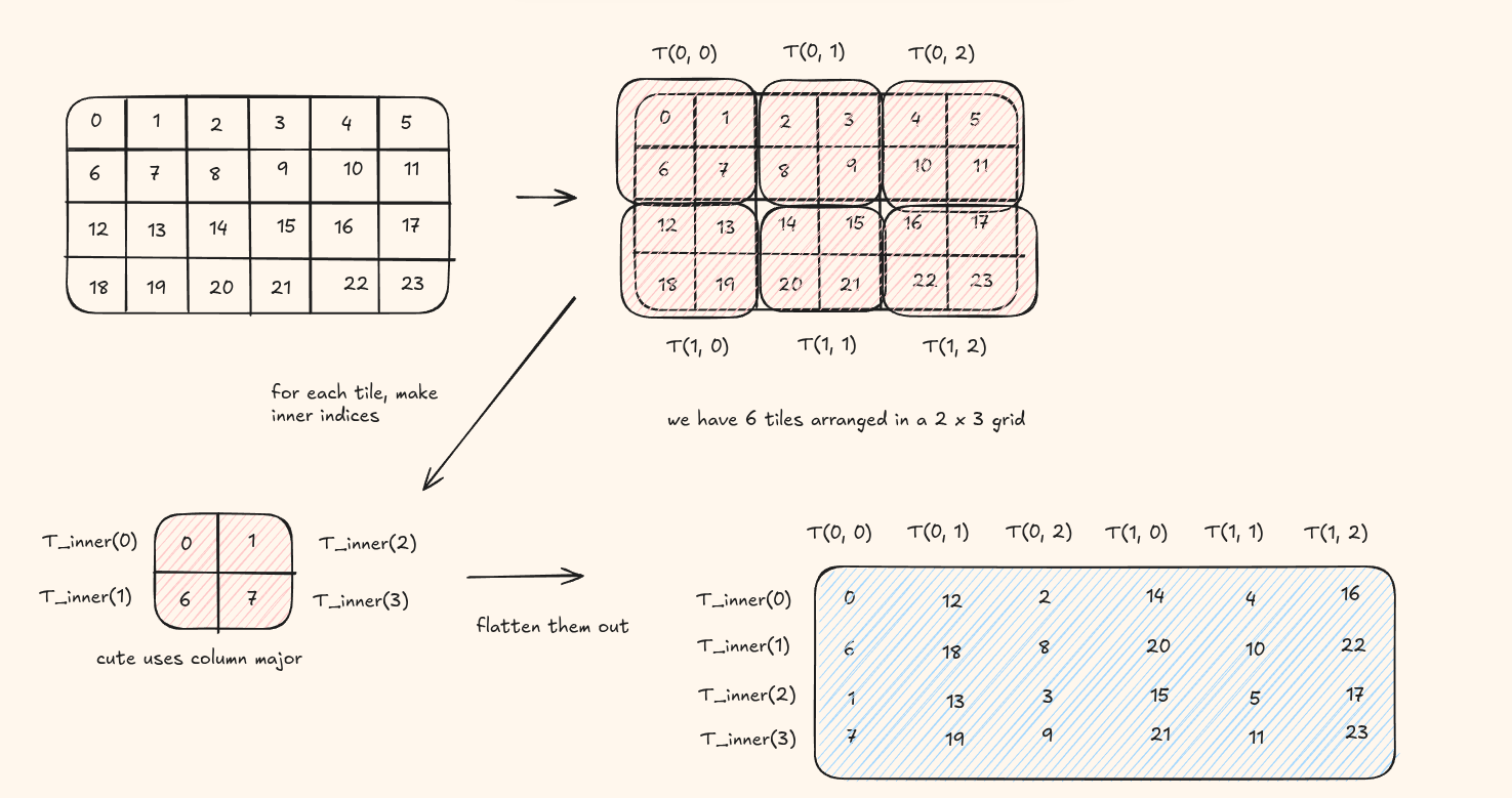 Let's divide the layout (4,6) : (6,1) by a 2 x 2 tile.